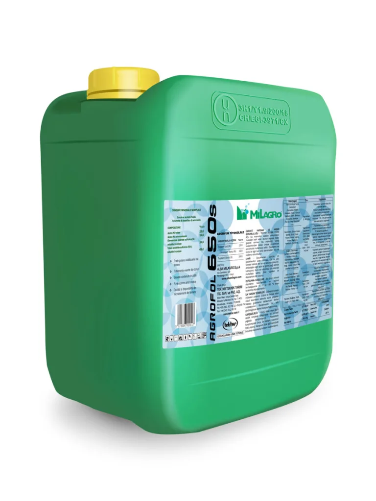 AGROFOL 650s AGROFOL 650s, amonyum tiyosulfat icerikli, safligi ve etkinligi yuksek bir sivi gubredir. Uretim periyodu… Listeye Ekle