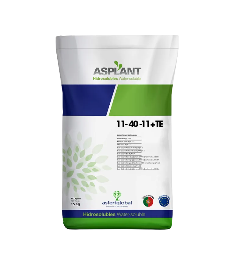 ASPLANT 11-40-11 + TE; yüksek fosfor oranıyla öne çıkan, bitkinin özellikle kök bölgesini güçlendirmeye ve başlangıç döneminde enerjiyi desteklemeye yönelik bir NPK gübresidir. Fosforun yüksek tutulması, genç bitkide köklenme isteğini artırmaya ve bitkinin tutunma sürecini hızlandırmaya yardımcı olur.
