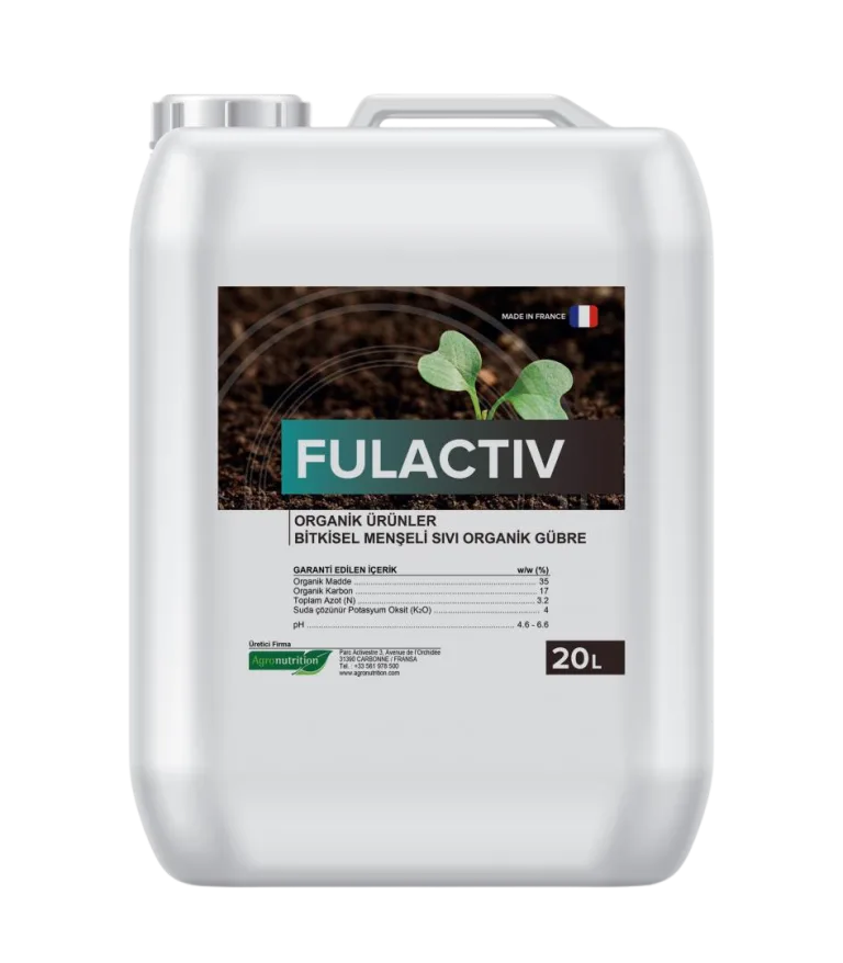 FULACTIV, bitkisel menşeli sıvı organik gübredir. Organik madde ve organik karbon içeriğiyle bitkinin gelişim dönemlerinde destek amaçlı kullanıma uygundur. İçeriğinde azot ve potasyum desteği bulunur.