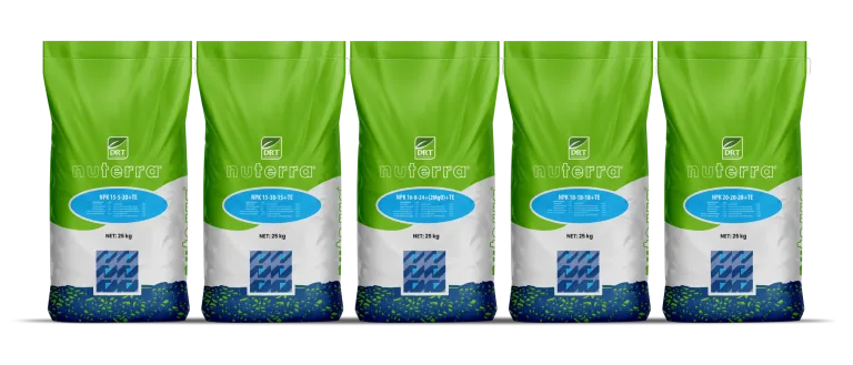 Nuterra; tamamen suda çözünebilen NPK+TE serisiyle, bitkinin dönemsel ihtiyaçlarına göre farklı formüller sunan bir gübre grubudur. Doktor Tarsa kalite güvencesi altında üretilen Nuterra serisi, makro besinler (N-P2O5-K2O) ile birlikte EDTA şelatlı iz elementler (B, Cu, Fe, Mn, Mo, Zn) içerir. Bu yapı sayesinde hem temel besleme hem de mikro element desteği tek program içinde yönetilebilir.